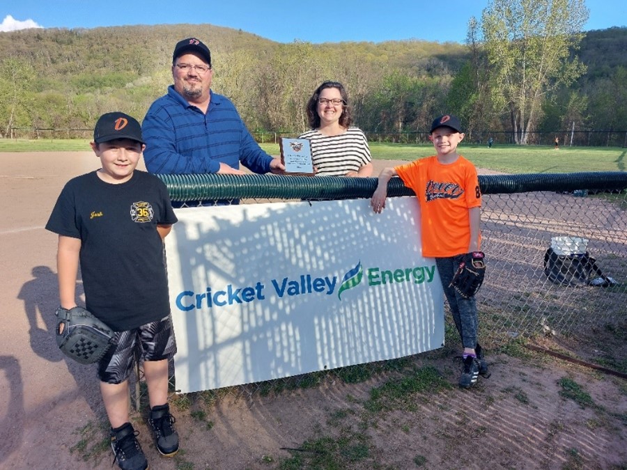 The CVEC team proudly supports the Dover Little League. The youth sports group provides a safe place for children to play baseball, get outdoor exercise, and build positive relationships with teammates and coaches. The CVEC team was invited to the field to accept a plaque for the donation made. A banner representing CVEC was proudly displayed near the entrance to the field.